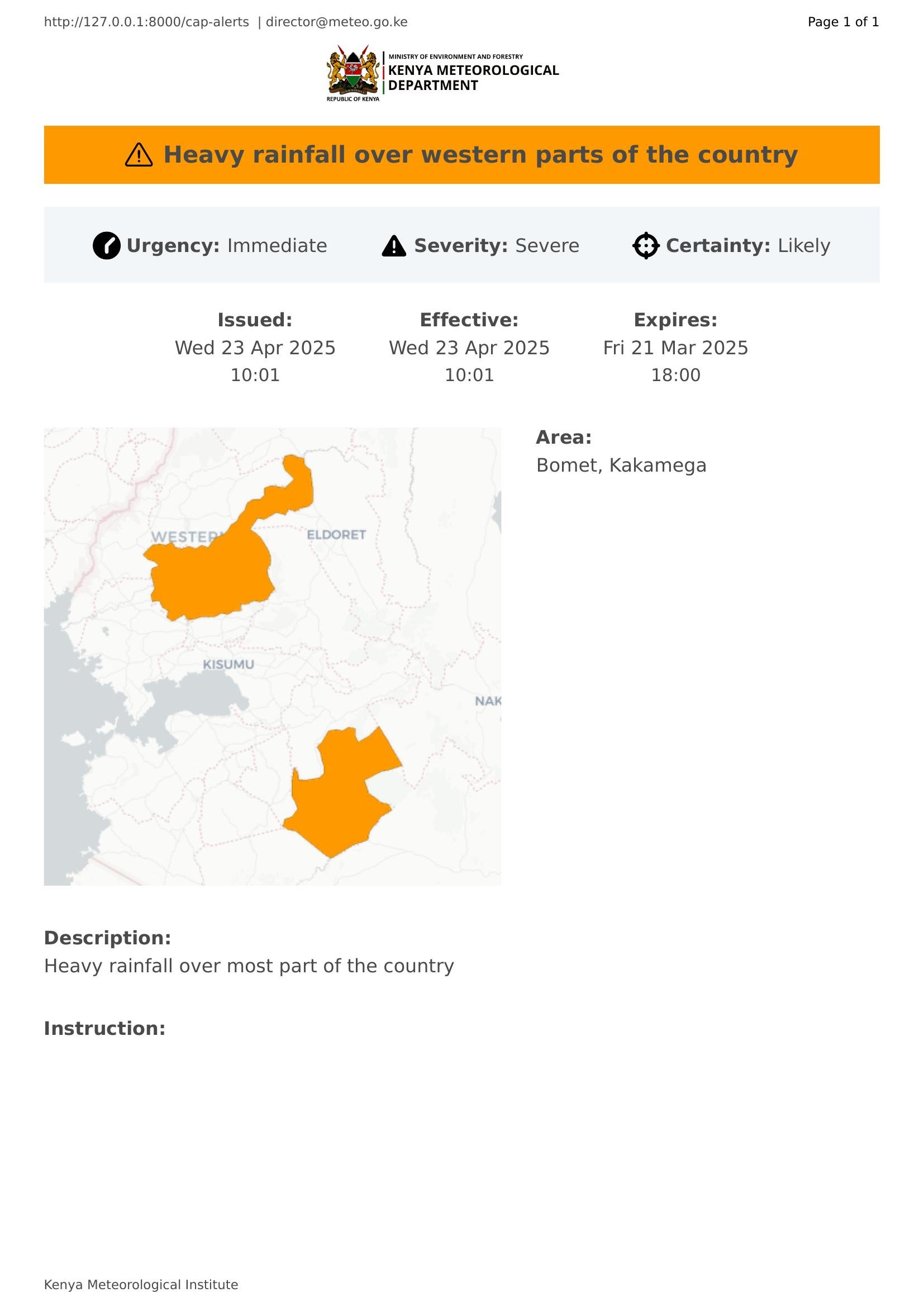 Heavy rainfall over western parts of the country